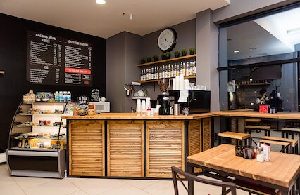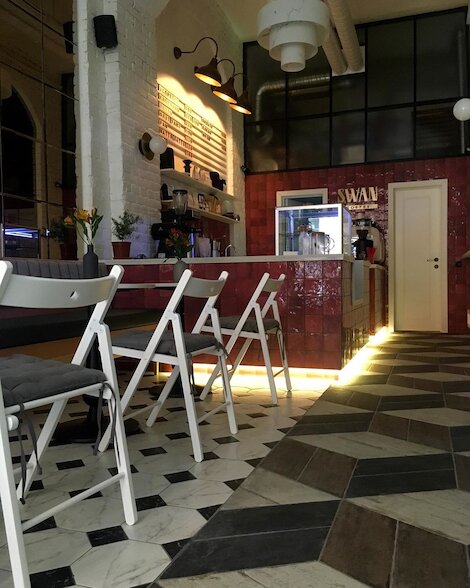 - Небольшая круглосуточная кофейня в историческом памятнике напротив метро «Василеостровская»