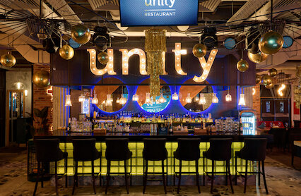 - Атмосферный лаунж с блюдами разных кухонь мира