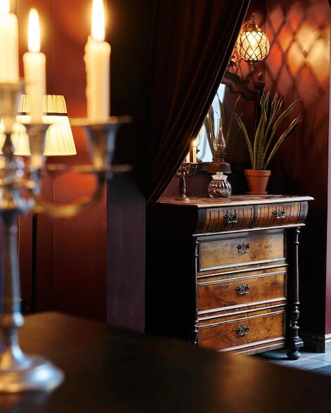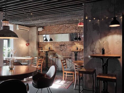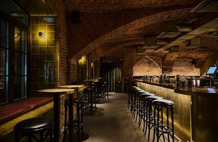 - Стильный бар с коктейлями, русской кухней и дореволюционным интерьером