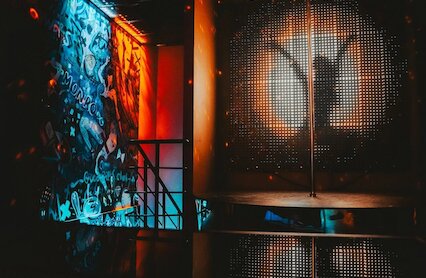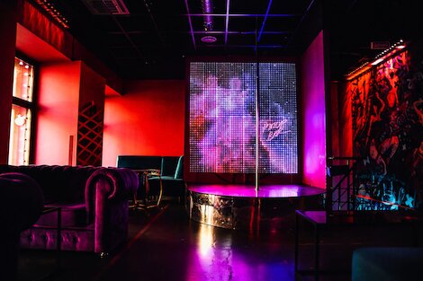 - Двухэтажный танцевальный бар с обилием световых декораций на Конюшенной площади