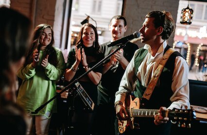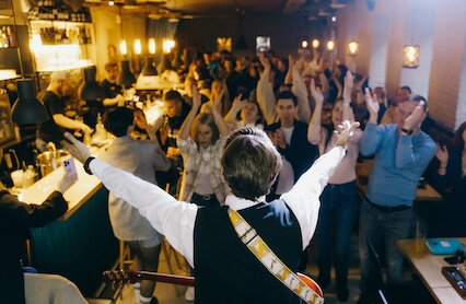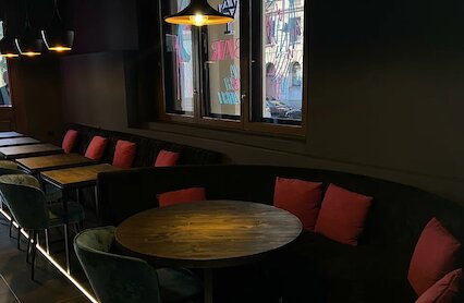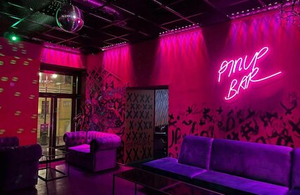 - Стильное тусовочное место с любопытными коктейлями, караоке и стендапом