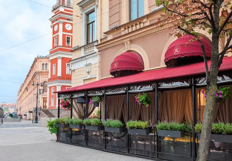 - Летний проект от ресторана «Европа» на углу Невского проспекта и Михайловской улицы.