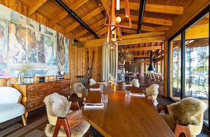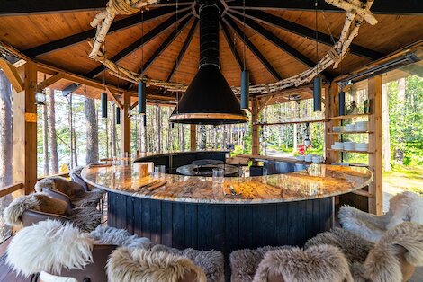 - Ресторан с блюдами на открытом огне в загородном лодж-отеле We Lodge