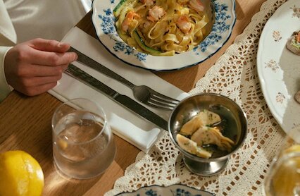 - Домашняя паста, мясо на огне и пицца из печи от звёздного шефа в масштабном ресторане в здании бывшего завода