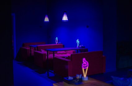 - Экстравертный бар с алкогольными и бестабачными паровыми коктейлями и вечеринками в пространстве Seno