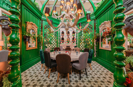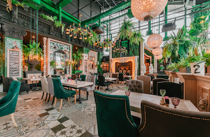 - Грузинский ресторан рядом с ярким интерьером и традиционным меню