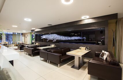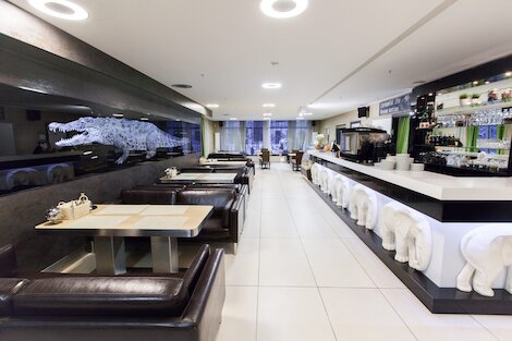 - Элегантный круглосуточный бар в лобби премиум-отеля «Амбассадор»
