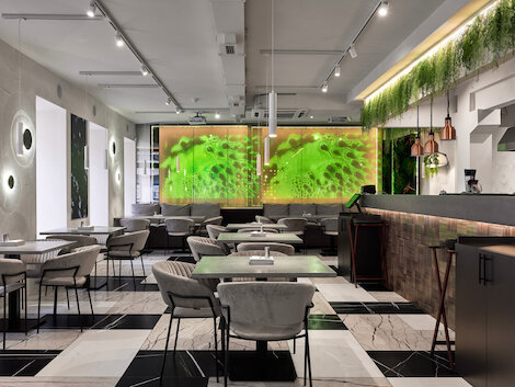 - Ресторан с сенсорными экранами на столах у Сенной площади
