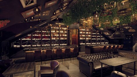 - Концептуальный лаунж-ресторан с интересными паровыми и алкогольными миксами, дымными дегустациями и арт-программой