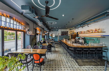 - Лаунж-бар с вайбом Майами, ретро-приставками, пинболом и музыкой в духе 80-х