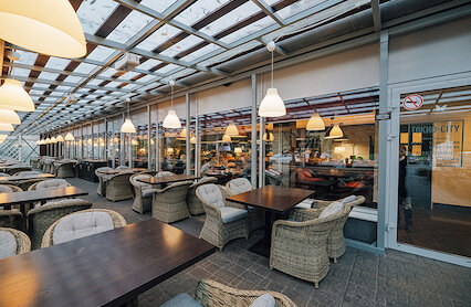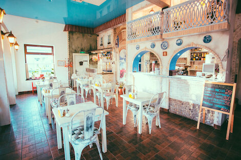 - Семейный ресторан со светлым интерьером и европейской кухней