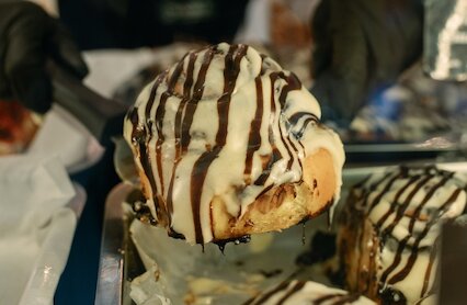 - Корнер со знаменитыми булочками «синнабон» в ТЦ «Меркурий» на улице Савушкина