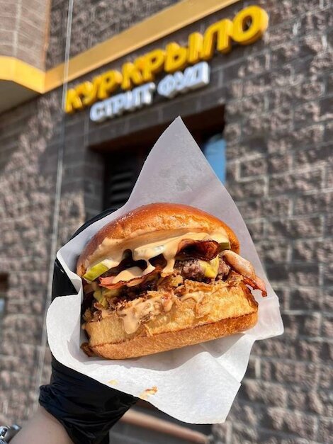 - Сетевая бургерная со стейками и рёбрами на улице Савушкина
