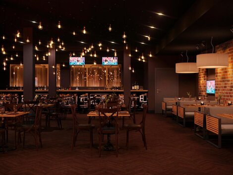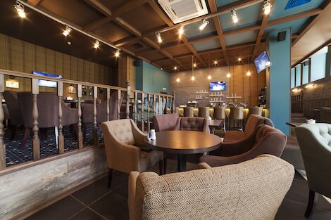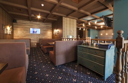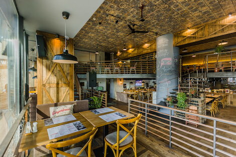 - Двухэтажный ресторан-бар с брутальной обстановкой в духе паба