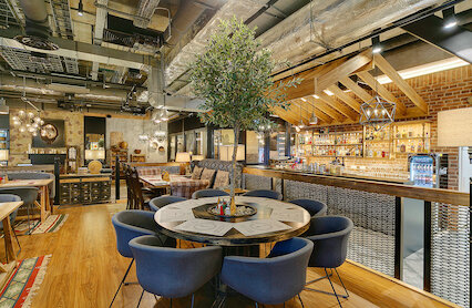 - Большой ресторан с открытой кухней в ТРЦ «Охта Молл»