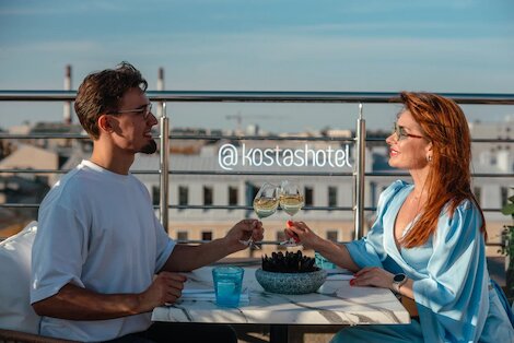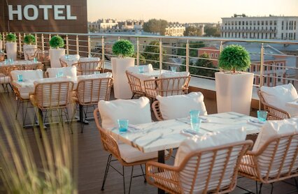 - Ресторан с террасой на крыше отеля «Костас»- Площадь Александра Невского