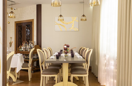 - Двухуровневый банкетный зал с изящным антуражем и летней террасой