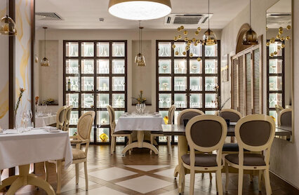- Ресторан в стильном лофт-пространстве при отеле Palace Bridge Hotel