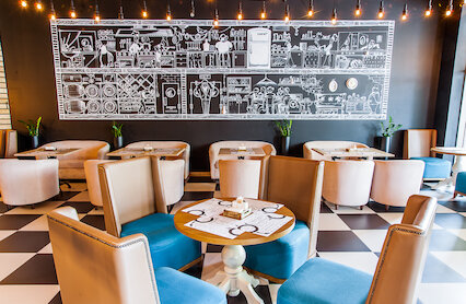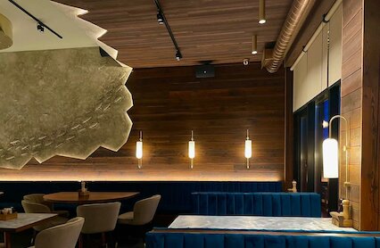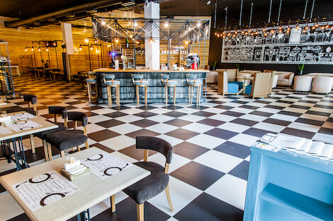 - Ресторан с множеством отсылок к Нью-Йорку в интерьере