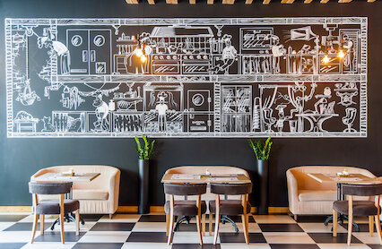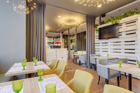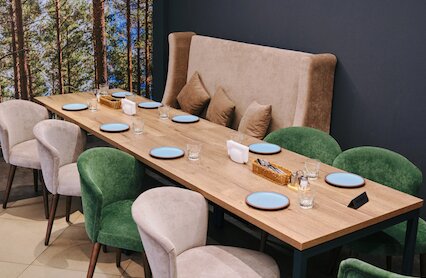 - Русско-европейский ресторан со светлым домашним интерьером