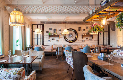 - Двухэтажный видовой ресторан в Сестрорецке со своим зелёным садом