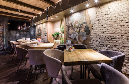 - Ресторан-пивоварня под старинными кирпичными сводами