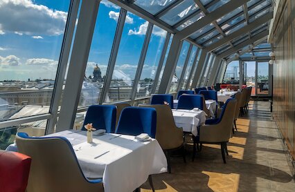 - Панорамный ресторан с видом на Неву на восьмом этаже отеля «Москва»