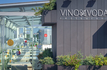 - Панорамный ресторан с видом на стадион Nova Arena и парковкой