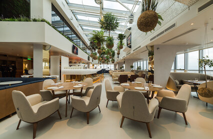 - Стильный европейский ресторан на первом этаже отеля напротив башни Lahta Plaza у Парка 300-летия
