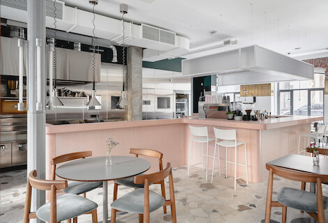 - Просторное светлое кафе в здании Конюшенного корпуса на Елагином острове