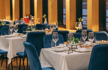 - Банкетный зал, где проводят мастер-классы, ужины и кулинарные тимбилдинги