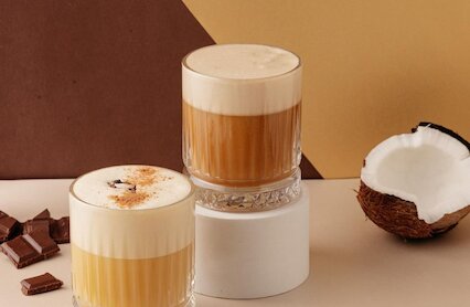 - Яркие напитки и десерты на основе матти от команды Cake Me Tender в фуд-холле Balagan