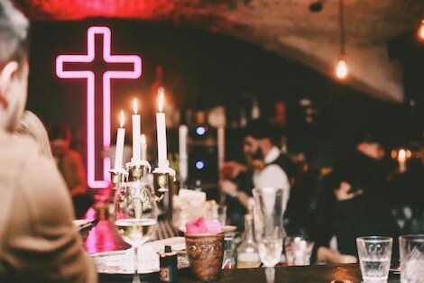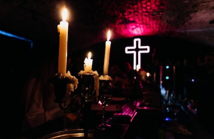 - Двухэтажный танцевальный бар с обилием световых декораций на Конюшенной площади