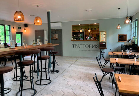 - Просторное светлое кафе в здании Конюшенного корпуса на Елагином острове