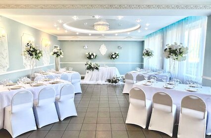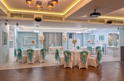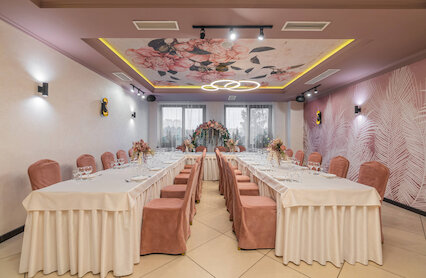 - Двухуровневый банкетный зал с изящным антуражем и летней террасой