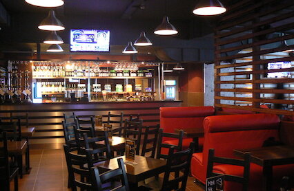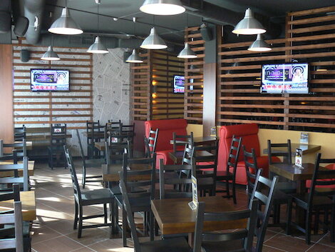 - Гастробар на первом этаже торгового комплекса «Индустриальный», где периодически проводят спортивные трансляции