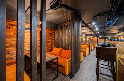 - Двухэтажный лаужн-ресторан с контактной барной стойкой на проспекте Косыгина