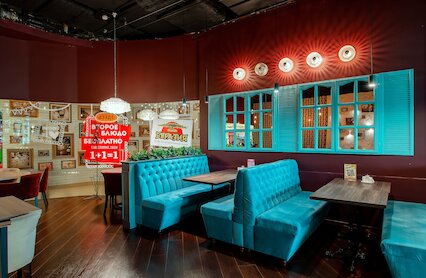 - Большой ресторан с открытой кухней в ТРЦ «Охта Молл»