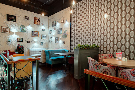 - Семейный сетевой ресторан с нарядно-колоритным интерьером и обширным восточно-европейским меню на Заневском проспек...