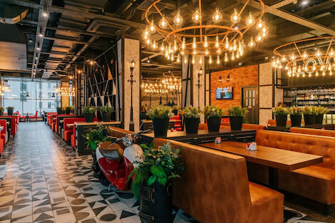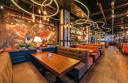 - Двухэтажный лаужн-ресторан с контактной барной стойкой на проспекте Косыгина