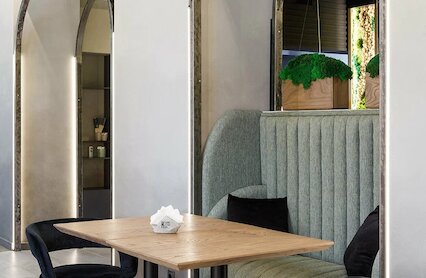 - Небольшое кафе на цокольном этаже одноименного отеля