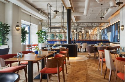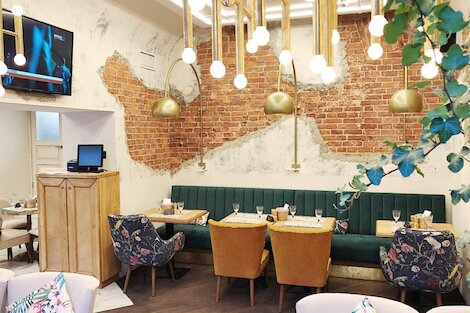 - Ресторан с атмосферой отельного лобби и игристым на завтрак