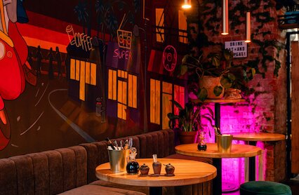 - Экстравертный бар с алкогольными и бестабачными паровыми коктейлями и вечеринками в пространстве Seno