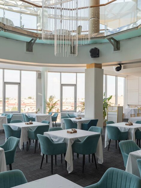 - Видовой ресторан на высоте 80 метров с европейской и русской кухней