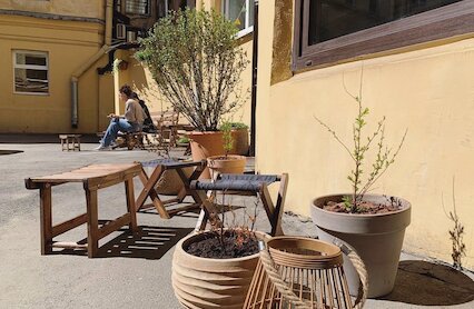 - Небольшая кофейня во дворе Вознесенского проспекта от сестер Нелипа