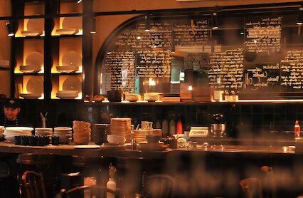 - Камерное китайское кафе с плитами на столах для готовки своими ручками