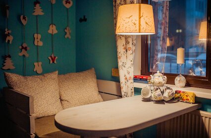 - Семейное заведение с уютным интерьером, полным домашних мелочей