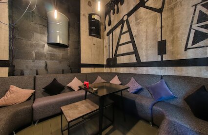 - Сетевой лаунж-бар в стиле нефтяного завода с полноценным меню и паровыми бестабачными коктейлями на Звездной