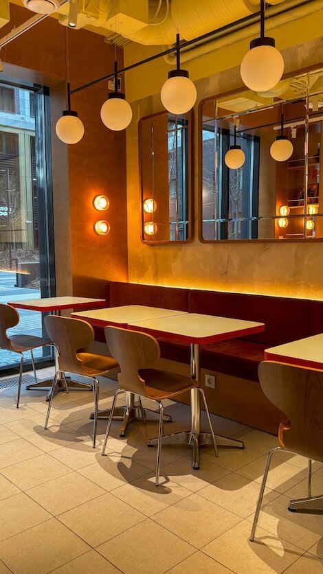 - Стильный камерный фудбар с завтраками, пивом и итальянской кухней