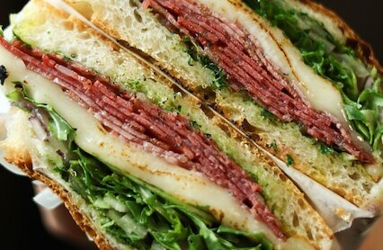 - Корнер на Василеостровском рынке, где готовят сэндвичи с хрустящей фокаччей